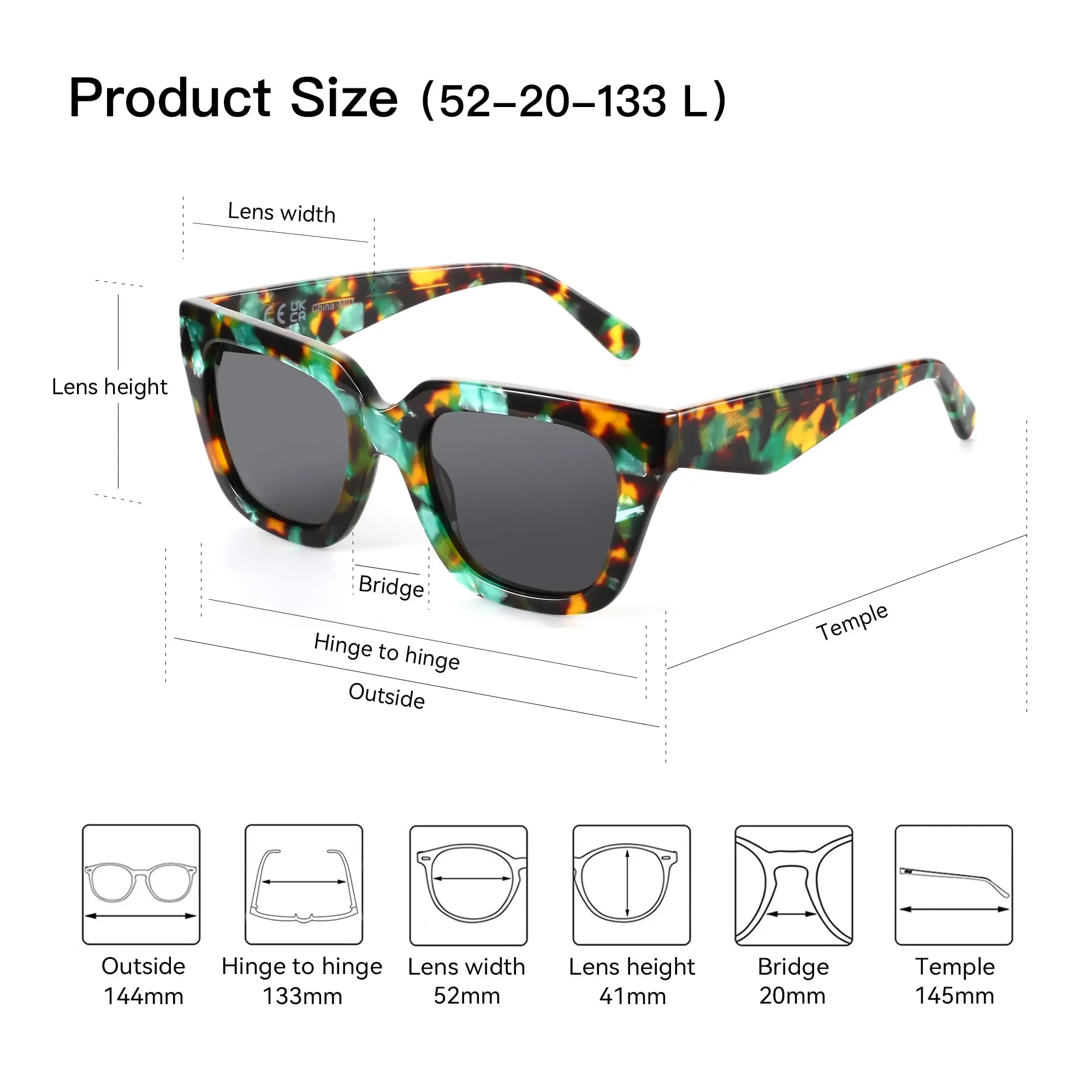 - Durable acetate frame with glossy finish