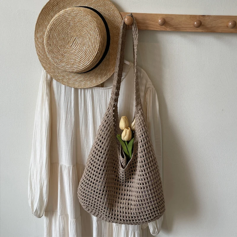 The Crochet Shoulder Bag offers a breezy, handcrafted look with its hollow open-weave construction and single-handle design. Made from soft materials and polyester-lined where needed, it’s ideal for carrying light essentials on beach days or casual outings. The airy silhouette keeps belongings ventilated and pairs seamlessly with sundresses, swimsuits, and festival looks. A practical, lightweight choice for shoppers searching for a relaxed summer handbag with vintage-inspired charm.