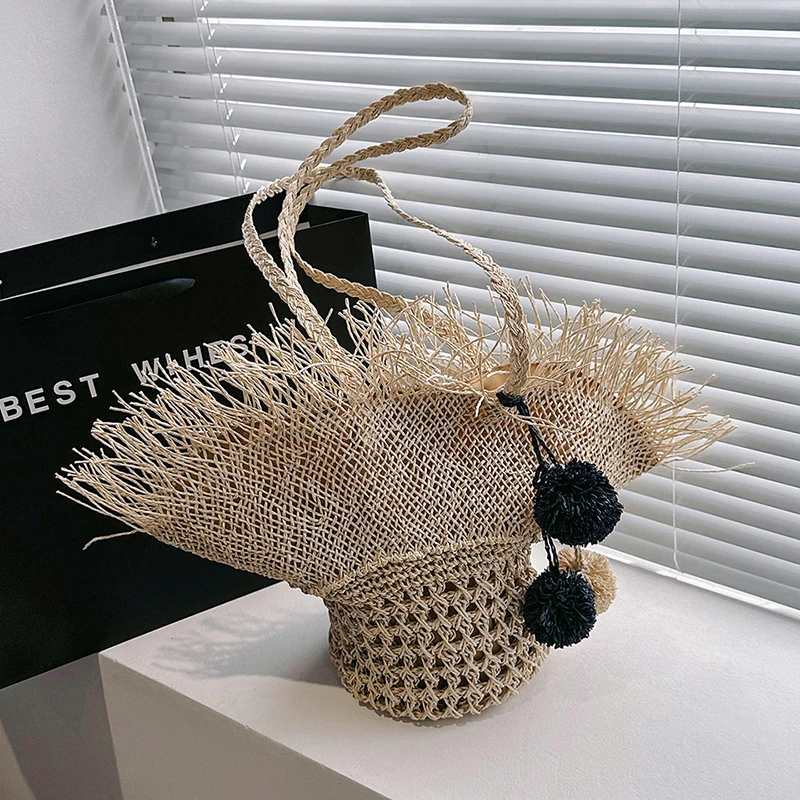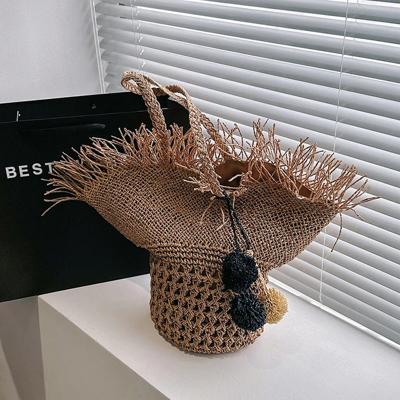 - Natural straw construction with polyester lining