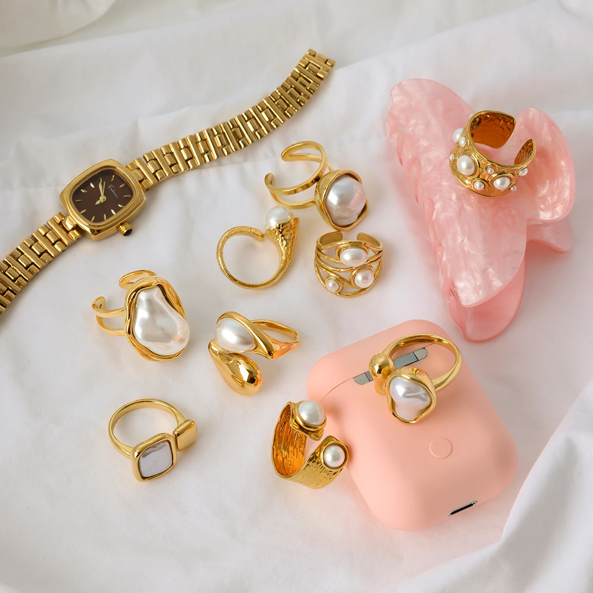 Sleek and elegant, this 18K gold pearl open ring brings sophistication to any outfit. Crafted from stainless steel and plated with durable 18K PVD gold, it’s waterproof, scratch-resistant, and hypoallergenic. Perfect for adding a refined touch to your everyday style.