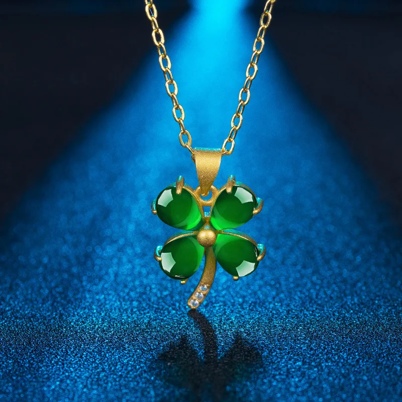 Green Four-Leaf Clover Pendant Necklace