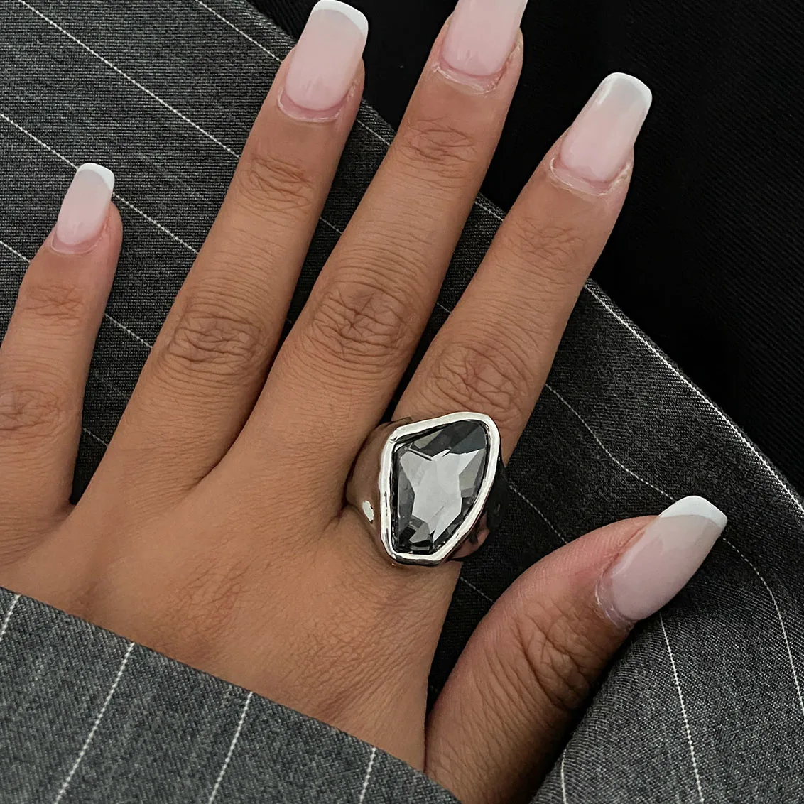Elevate your everyday look with this Grey Crystal Geometric Silver Ring, featuring a modern square-cut crystal set in a sleek silver-plated band. Its minimalist, asymmetrical design adds a contemporary edge to any outfit — from casual ensembles to elegant evening wear. Crafted from durable zinc alloy, this ring combines comfort with fashion, making it ideal for daily wear, work, or special occasions. Whether as a thoughtful gift for a loved one or a stylish treat for yourself, it’s the perfect piece to express understated elegance and individuality.