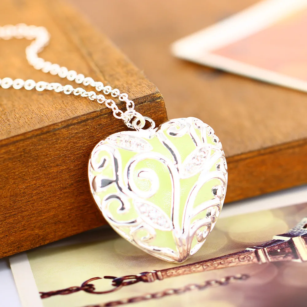 Made from durable tin alloy and plated in silver tone, the necklace features a luminous inner core that charges in natural or artificial light, then emits a soft, enchanting glow after dark. Perfect for women who love unique statement pieces, it’s ideal for parties, evening events, or as a thoughtful romantic gift.