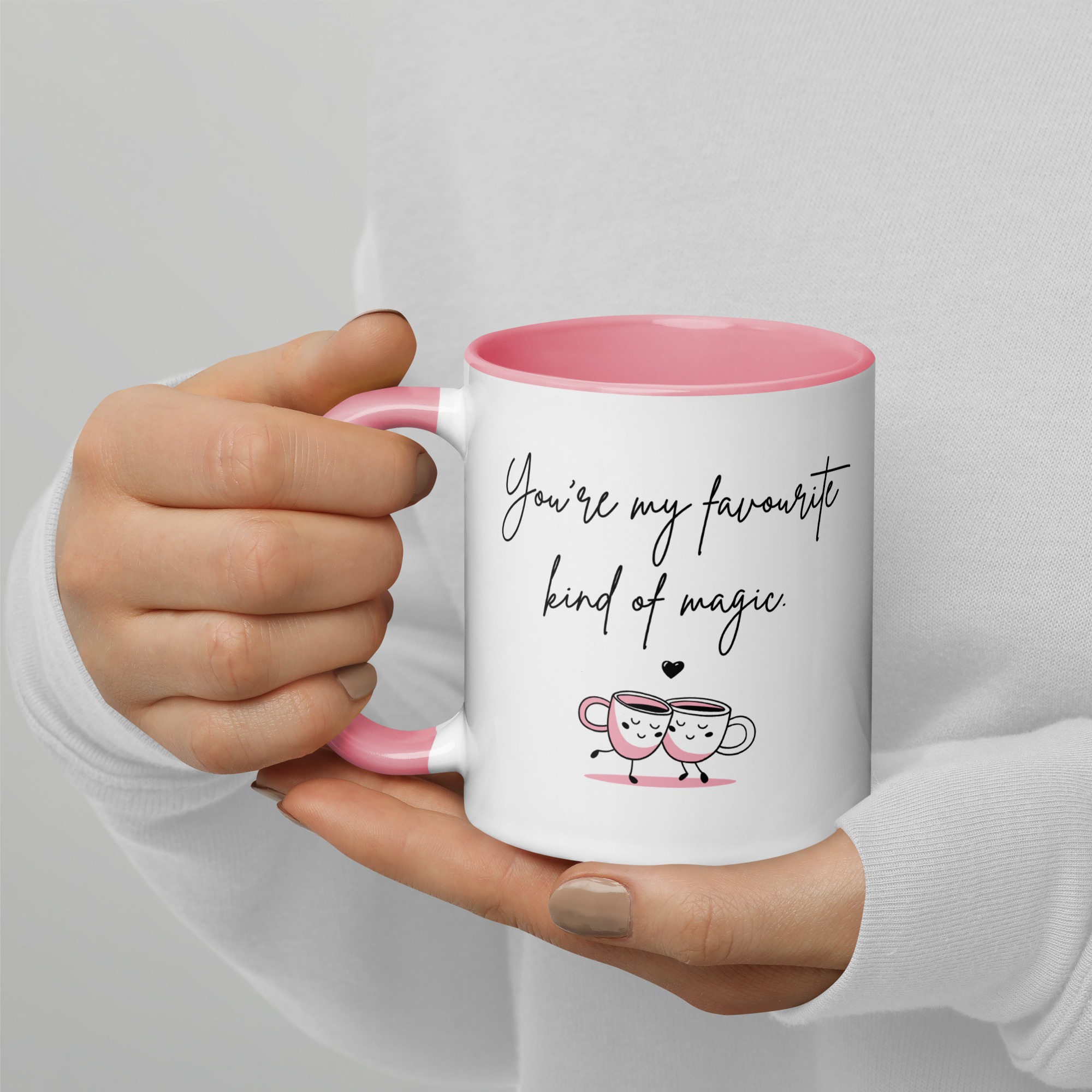 Add a splash of color to your morning coffee or tea ritual! These ceramic mugs not only have a beautiful design on them, but also a colorful rim, handle, and inside, so the mug is bound to spice up your mug rack.