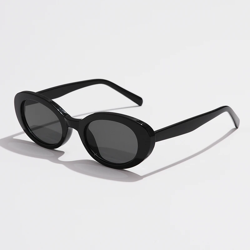 Retro Oval Unisex Sunglasses UV400 Black Frame Design