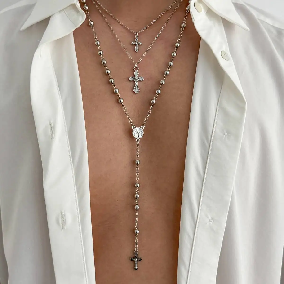 Elevate your streetwear style with this Salircon Hip Hop Cross Pendant Necklace Set. Designed for versatility, it includes three individual chain styles that can be layered or worn separately. Crafted from durable copper and iron alloy with REACH-certified safety, it’s both fashionable and comfortable to wear. Ideal for men who want to express individuality through statement jewellery.