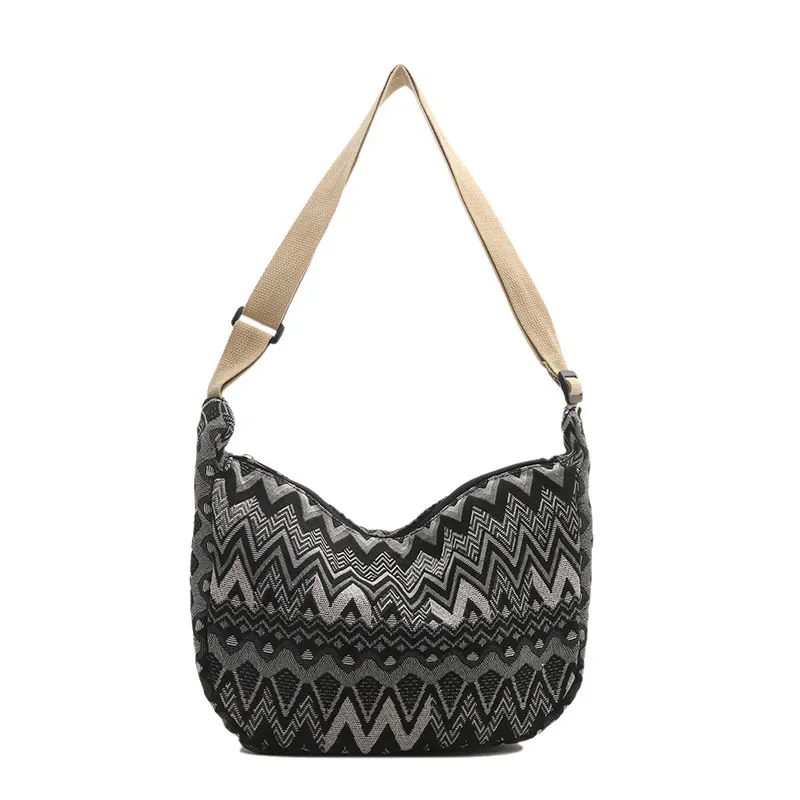 The Wave Pattern Canvas Crossbody Bag combines durable canvas construction with a modern wave pattern for everyday practicality. With a secure zip closure and a roomy interior suitable for books, tablets and daily essentials, this bag is built for students and commuters who want functional style. The moderate structured body and soft polyester lining provide durability and easy care, while the casual silhouette fits both travel and daily life. A versatile companion for those who prefer utility without compromising on looks.